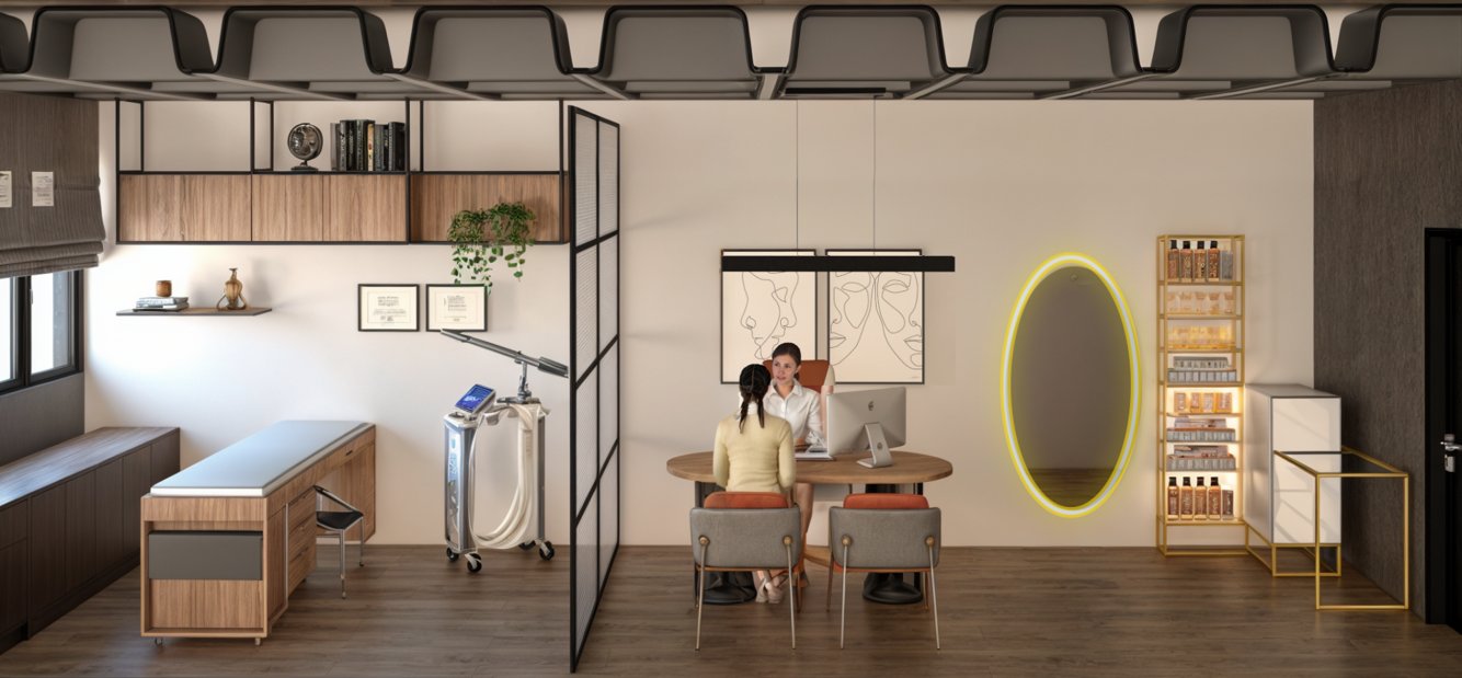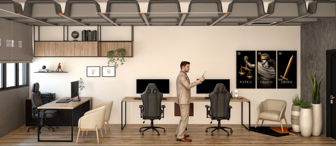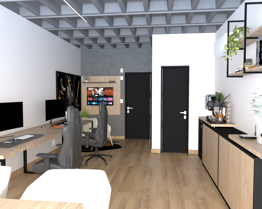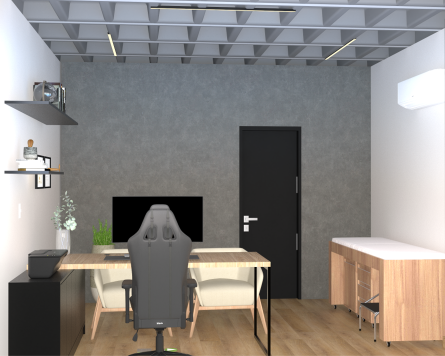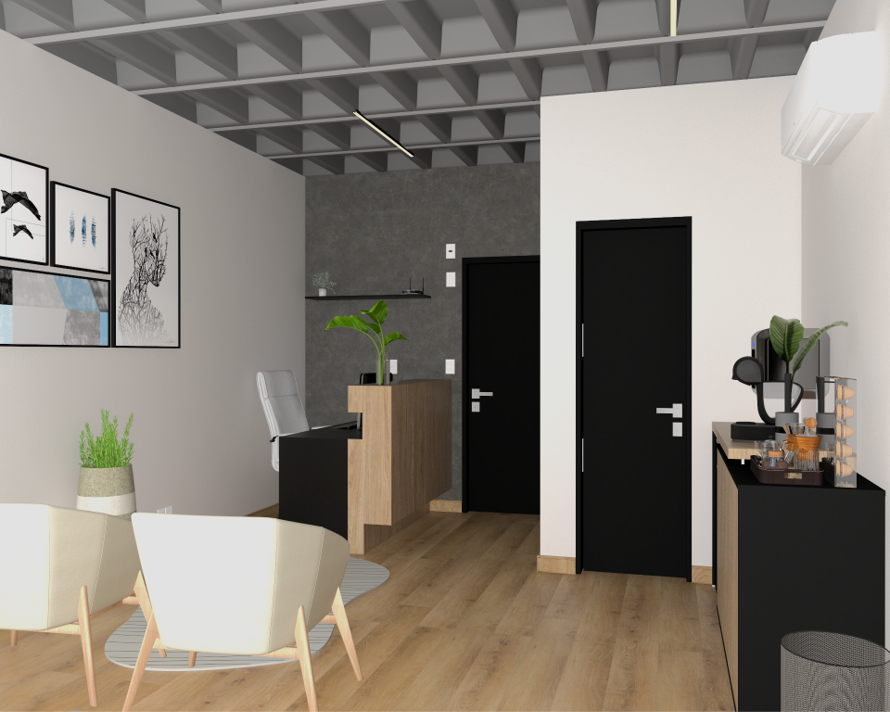 Este projeto comercial foi desenvolvido com foco na adaptabilidade: um espaço multi layout, pronto para receber profissionais de diferentes áreas, desde consultórios até escritórios criativos.