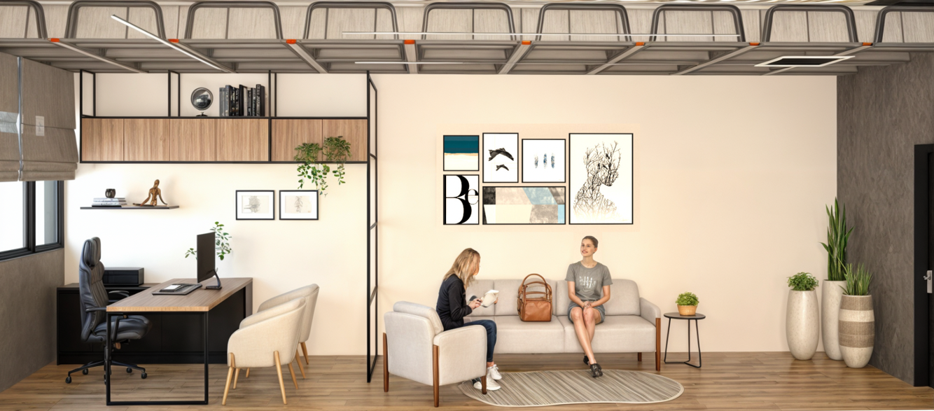 A infraestrutura foi pensada para oferecer máxima flexibilidade — com pontos de energia e iluminação estrategicamente distribuídos, divisórias modulares e infraestrutura pronta para tecnologia. Um espaço que une forma e função, preparado para evoluir junto com seus futuros ocupantes.